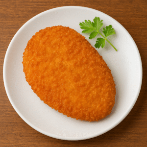 İncecik açılmış phasellus tavuk fileto, varius pane harcıyla kaplanır.