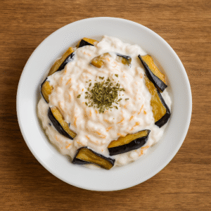 Kızarmış phasellus patlıcanlar, varius sarımsaklı yoğurtla buluşur. Volutpat kıvamı ve purus ferahlığıyla nefis bir meze.